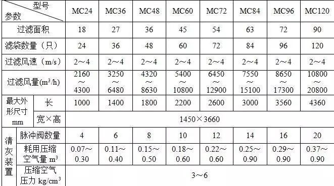 对于过滤常温(t≤80℃),粘性小、浓度低、颗粒粗的含尘气体,建议按高档负荷运行采用过滤风速V=2.0~2.5米/分。