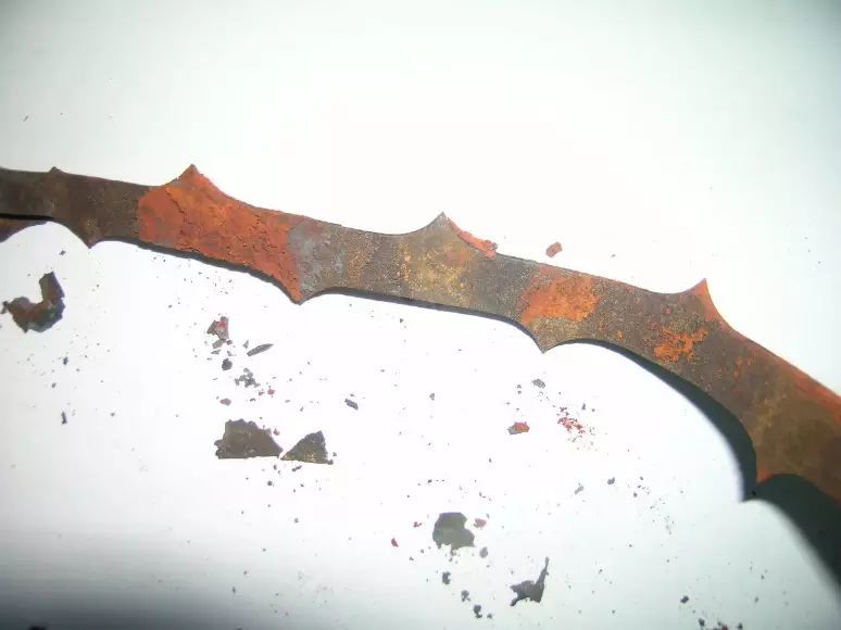 宏观检查发现,电除尘器极线发生严重的氧化腐蚀,呈深褐色和红棕色,腐蚀产物剥落(见图2),极线的宽度、齿高和厚度发生明显变化。